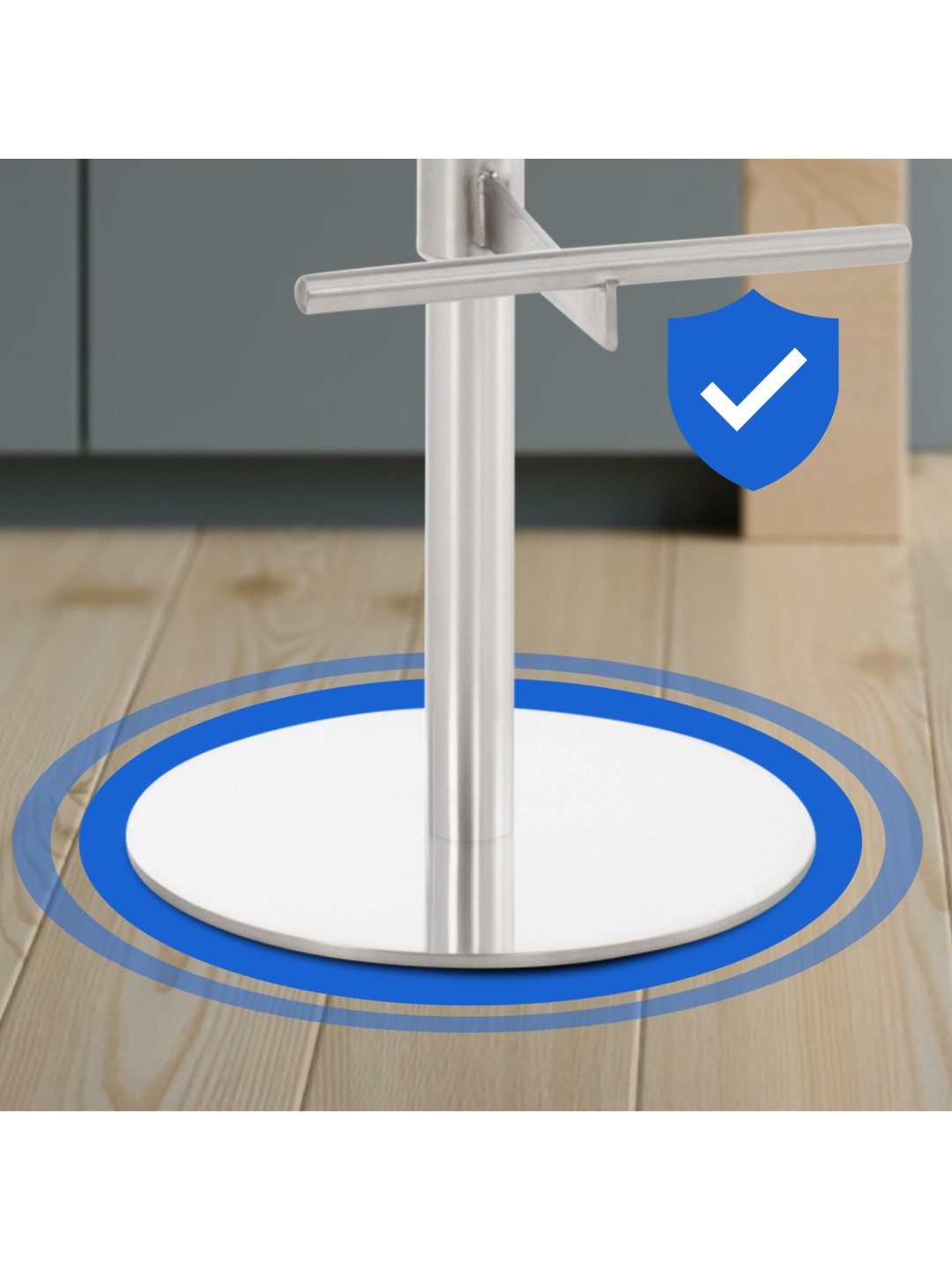 Integroitu jalkatuki lisää istumamukavuutta. Lopuksi baarituoli on varustettu lattiasuojilla, jotta herkätkin pinnat ovat suojassa.