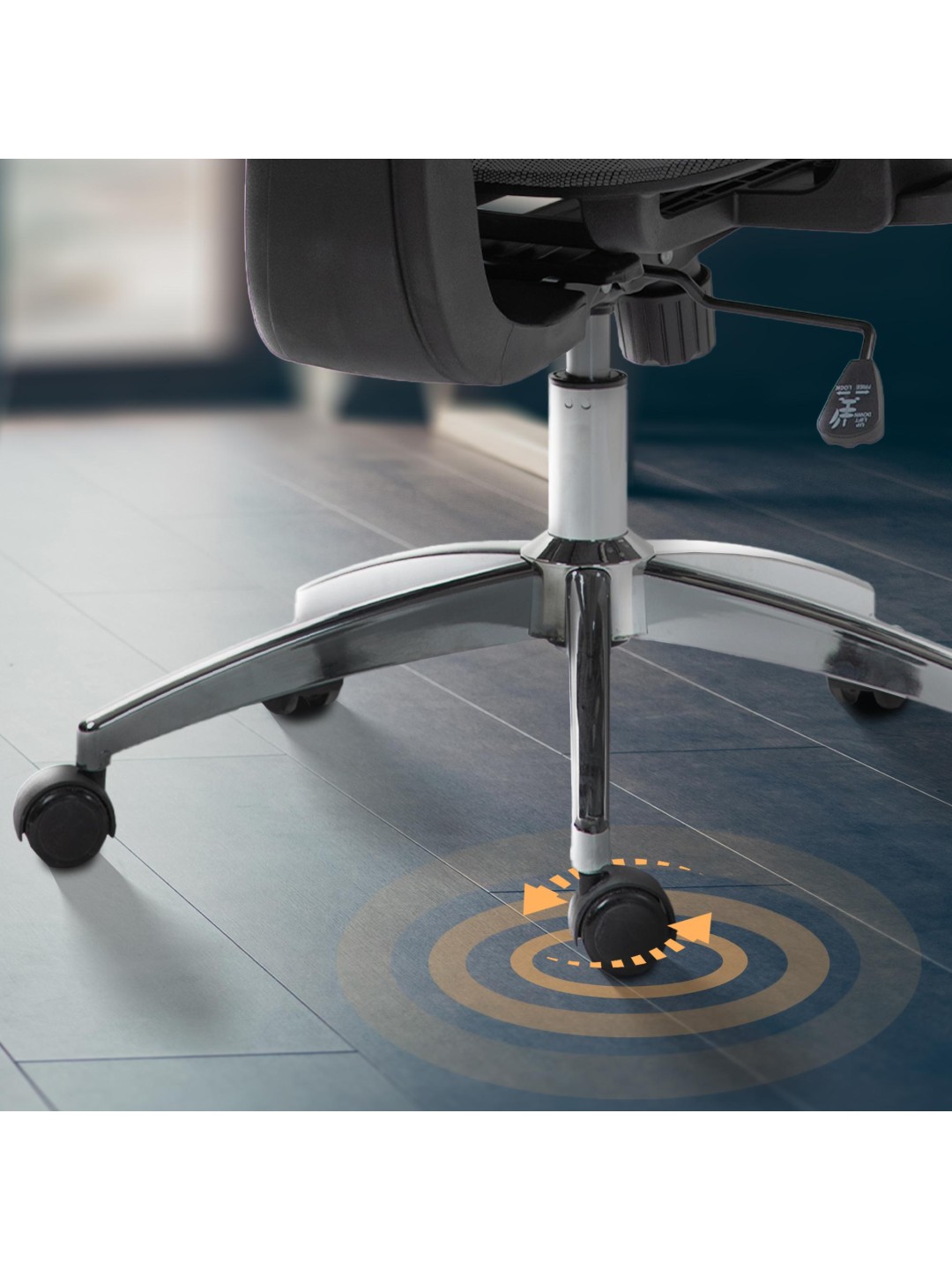 Kääntötuolin korkeutta voi säätää portaattomasti laadukkaalla kaasunostimella. Lopuksi äärimmäisen vankka runko sujuvasti pyörivin pyörineen antaa kääntötuolille vakaan jalustan. Maksimikuormitus on 135 kg.
